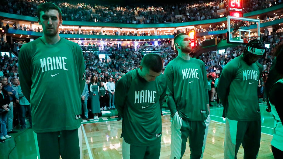 Before their home opener, Celtics players wore the warmups of their NBA G League affiliate, the Maine Celtics. During the game, the players wore a band on their jersey in honor of the state as it recovers after a shooter killed 18 people and wounded 13 at a bowling alley and a bar there.