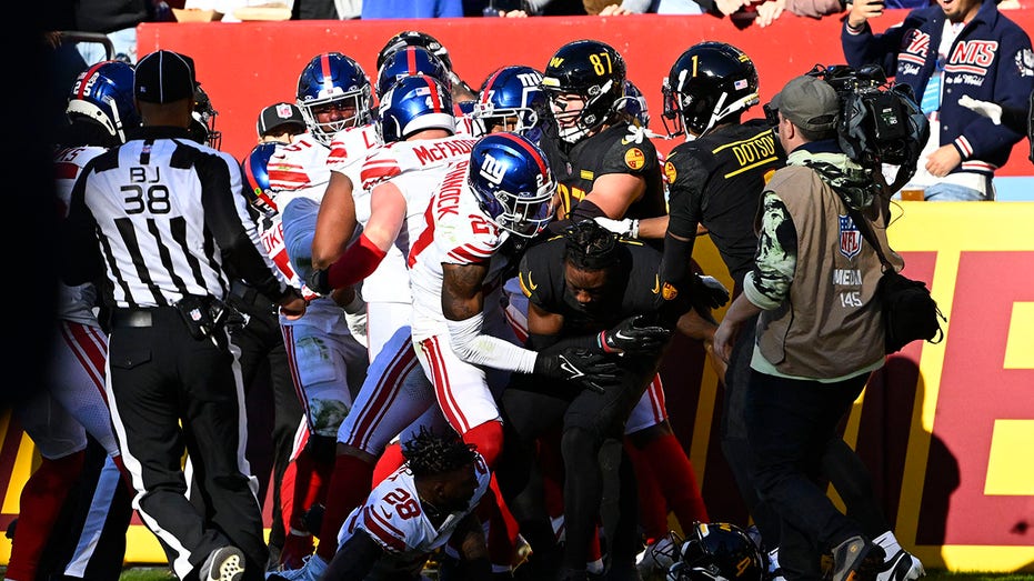 A tough rushing touchdown by Washington Commanders rookie quarterback Sam Howell led to a brawl with the New York Giants in the first half of this matchup between division rivals on Sunday.