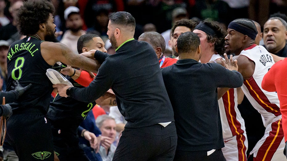 Williamson hit the floor hard, and a couple of his teammates rushed over to make sure he was OK, with one pushing Love out of the way. Butler returned with a push of his own, and that's when he and Marshall came face to face. When they were jawing at one another, Marshall put his right hand around Butler's throat, and they had to be separated by members of both teams.